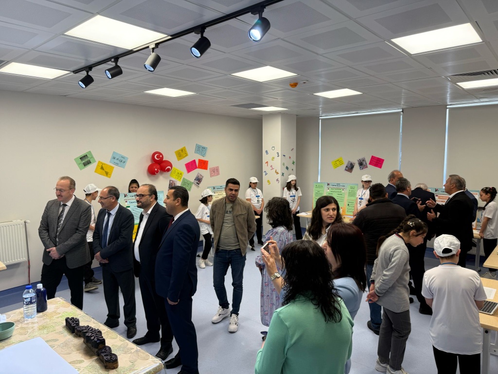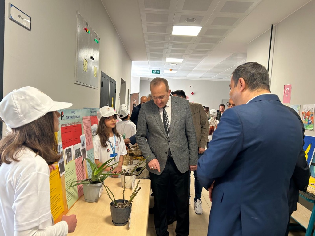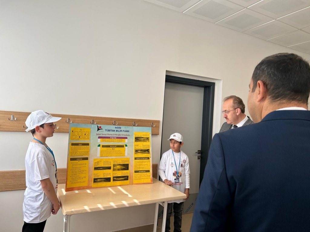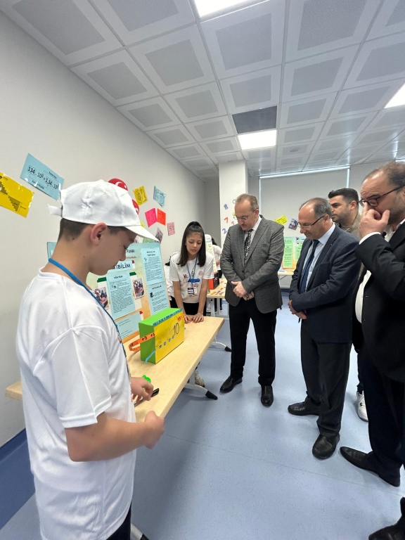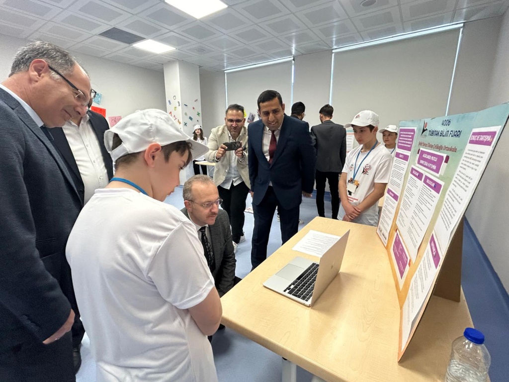 Ziyaretçilerimiz, öğrencilerimizle birebir iletişim kurarak hem projelerin süreçlerine dair bilgi aldılar hem de genç araştırmacıların bilimsel meraklarına tanıklık ettiler. Öğrencilerimizin özgüvenle gerçekleştirdikleri sunumlar büyük takdir topladı.